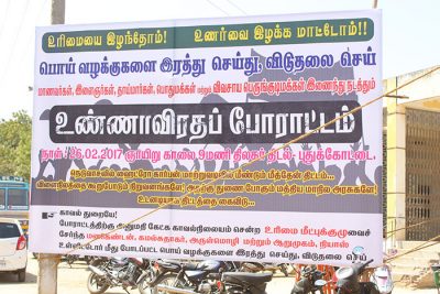 சாலைகள் அனைத்தும் மறிக்கப்பட்டு தணிக்கை செய்யப்பட்டு போராட்டக்காரர்கள் வேட்டையாடப்படுகிறார்கள். நகரங்கள், கிராமங்கள் என்று பாராது தமிழகத்தின் அனைத்து முக்கியப் புள்ளிகளையும் போராட்டக்களமாக மாற்றுவதன் மூலம் சதிகாரர்களையும் அடக்குமுறை சக்திகளையும் முறியடிக்க முடியும்.