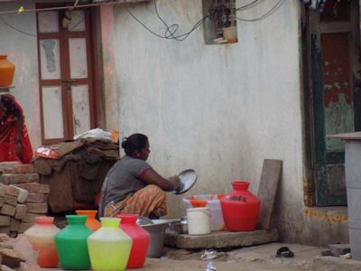 “டேய் முத்து… ஏ… ராமய்யா….” – என்று வெளியில் திரியும் தங்களது பிள்ளைகளை அழைக்கிறார்கள். பதினைந்து இருபது நிமிடத்திற்குள் எல்லோர் வீட்டு முன்பும், அண்டா குண்டாவிலிருந்து சிறிய பாத்திரங்கள் வரை வாசலில் குவிந்துவிட்டன. ஒரு போருக்கான சூழல் அங்கு நிலவியது. ஆம், தண்ணீர் லாரி வரப்போகிறது. இன்னும் இரண்டு மணி நேரத்தில் வரலாம்; இரண்டு நாட்கள்கூட ஆகலாம்.