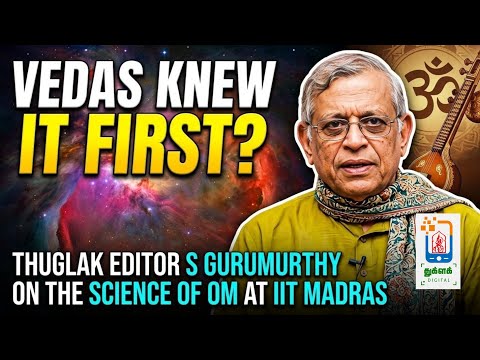 ஆனால் இந்தப் பின்ணணி குறித்து எதுவுமே தெரியாமல் நியூட்டன் தப்பு செய்து விட்டார், ஐன்ஸ்டைன் தப்பு செய்து விட்டார். அந்தத் தப்புகளை எல்லாம் நமது பண்டைய ரிஷிகள்தான் வந்து சரி செய்து கொடுத்தார்கள் என்ற ரேஞ்சுக்கு குருமூர்த்தி அளக்கிறார். கூடவே பிக் பேங் நடந்த போது எழுந்த ஒலி 'ஓம்' போலக் கேட்டது, என்றும் சொல்கிறார். அதை நிரூபிக்க ஒரு ஆடியோ போடுகிறார். ஏதோ சித்தார் இசை போலக் கேட்கிறது அது. பிக் பேங்க் நடந்த போது பண்டித் ரவிஷங்கர் அங்கே இருந்தாரா என்று கேட்கத் தோன்றியது.